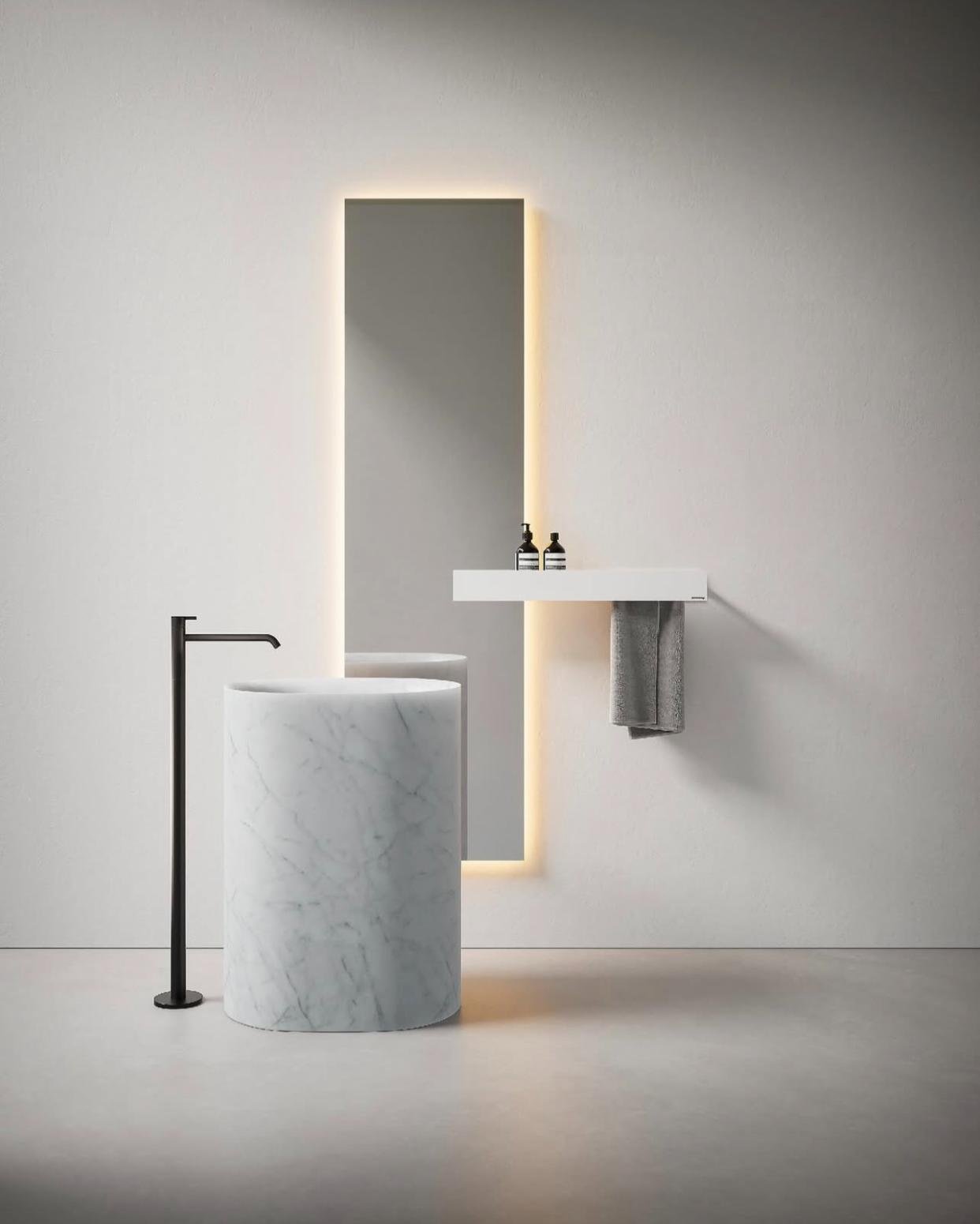 Baignoires aux formes pures, lavabos sculptés dans des matériaux nobles, miroirs et accessoires d’une rare sophistication : chaque pièce traduit une recherche constante d’équilibre entre fonctionnalité et esthétique. Antonio Lupi transforme la salle de bain en un lieu de bien-être, pensé comme une véritable expérience sensorielle.