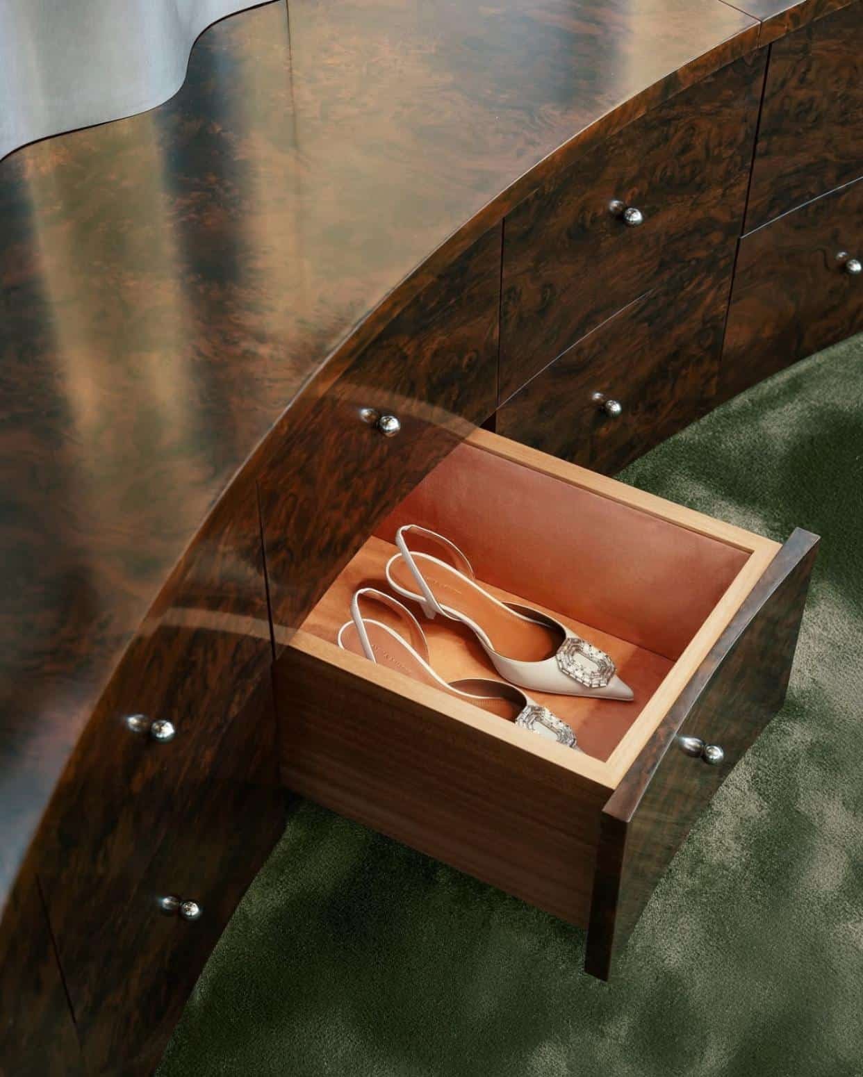 Des lignes architecturales audacieuses, un glamour assumé et une élégance sculpturale qui redéfinissent la chaussure contemporaine.